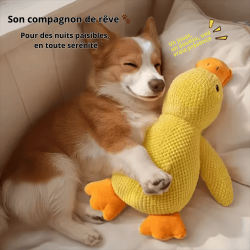 Le Canard Calmant combine forme rassurante, texture moelleuse et couleurs que les chiens peuvent voir, ce qui déclenche chez eux un fort sentiment de confort et d'attachement.